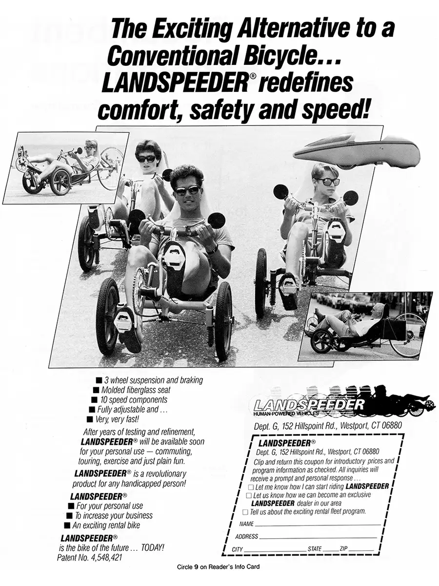 - LandSpeeder, the world’s first mass-produced three-wheeled recumbent bicycle